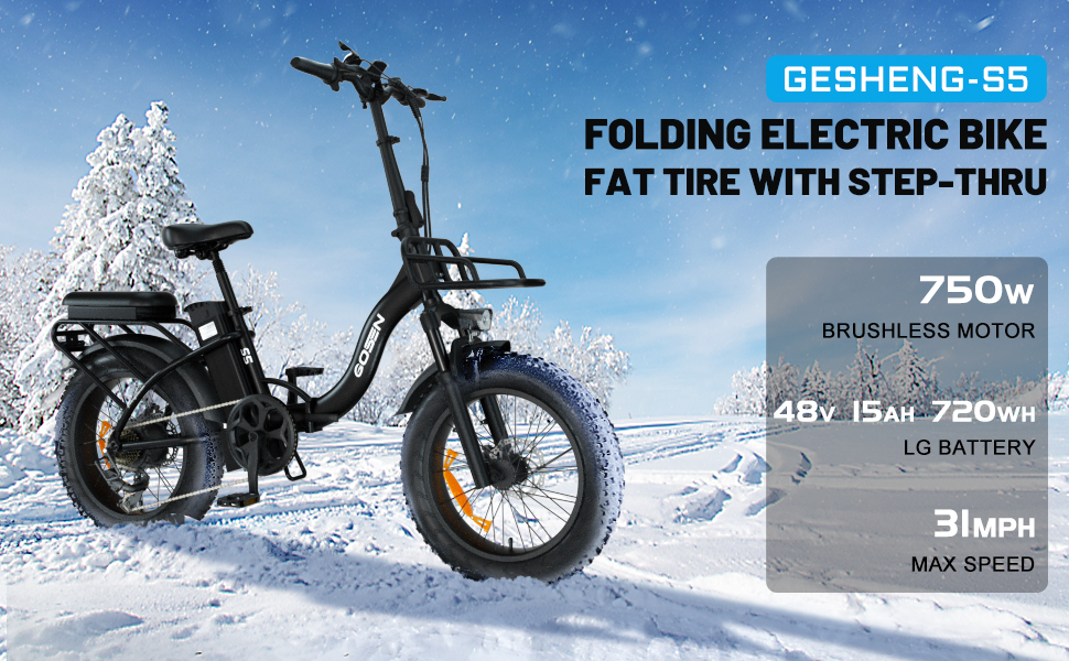 Gesheng 750w Folding Electric Bike Adults Upgraded Lg Battery 48v 15ah Fat Tire Ebike 31mph 20 X4 0 Step Thru Electric Bicycle S5 For Men Women All Terrain Riding Front Carrier As Gift Amazon Ca